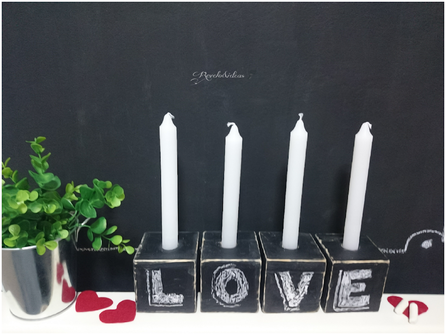 utilizados, en esta celebración, pero a mi me gusta romper moldes y saltarme las normas. El elemento que voy a utilizar es un material muy noble y versátil como es la madera, además es un material de reciclaje ya que para el utilicé los tacos cuadrados que vienen en los palet....que por cierto cuantas posibilidades tienen, e hice unos porta-velas de madera, para un centro de mesa diy para San Valentín.