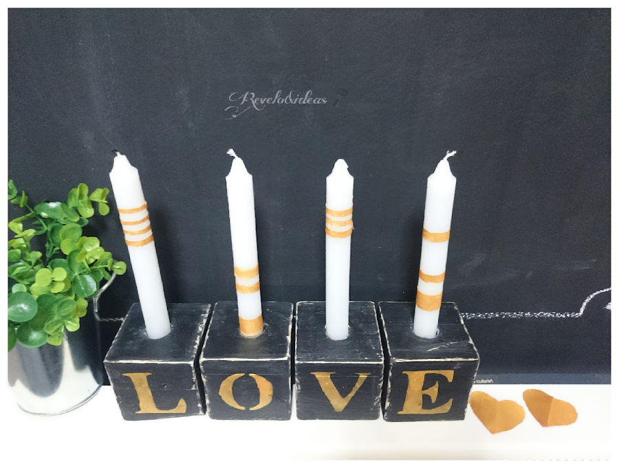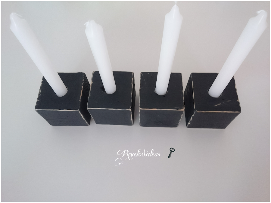 Asi queda una vez decorado, por muy poco tendremos una maravilla de portavelas, solamente con un taquito de madera y un poco de pintura, pero con mucha imaginación, pasaremos un ratito muy agradable haciendo este diy.