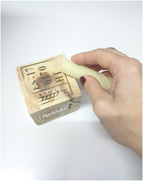 El siguiente paso es pasar con la vela, por todos los cantos del cuadrado de madera, esto es para facilitar el decapado previo, que se le hará después de pintar.
