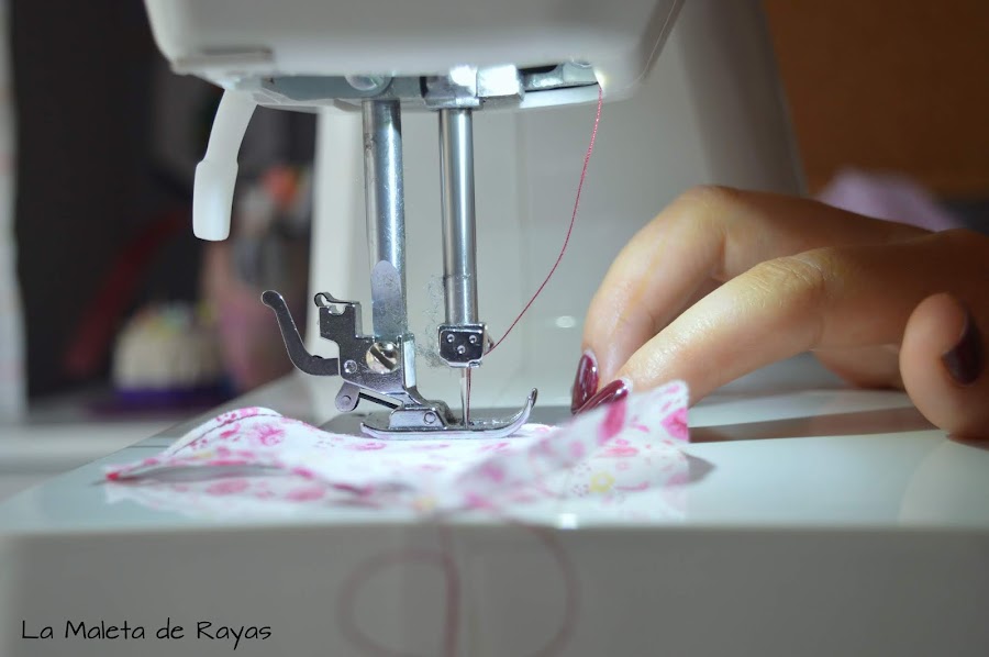 Cogemos las piezas de las orejas y les pasamos a la máquina un dobladillo, para que no se deshilachen y para facilitarnos coserlas después a la pieza del cuerpo.