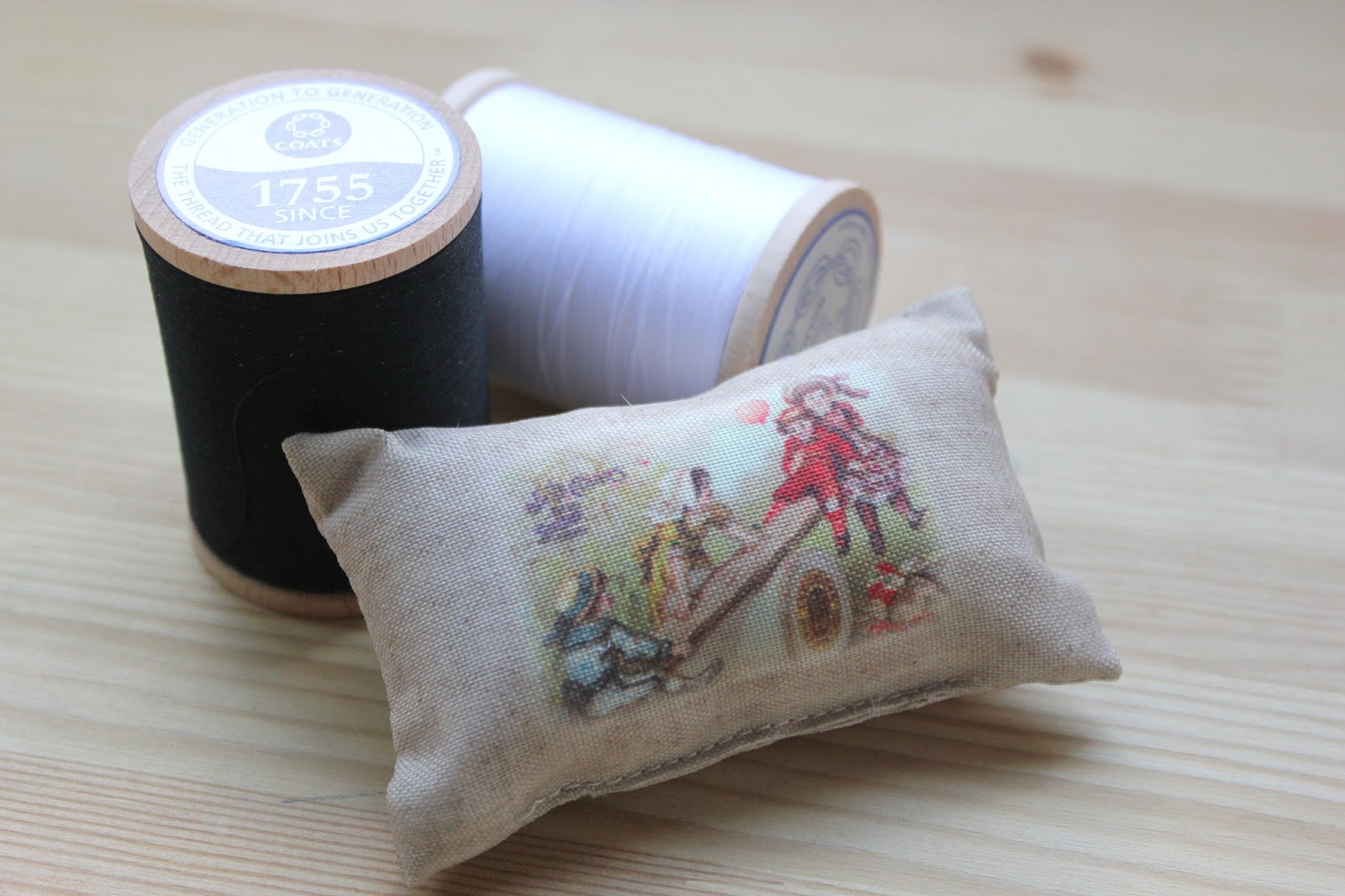 Ayer mientras hacia este diy, recibí un regalo muy especial. Los chicos de Coats me han enviado un un kit de costura de exclusivo diseño vintage: hilo de costura en carretes de madera, en blanco y negro, juntamente con un acerico de regalo, acerico inspirado en los icónicos anuncios vintage de Coats. Que bien me vienen estos hilos, porque ya se me estaban acabando y son básicos en costura :D