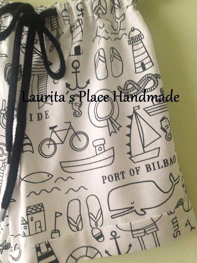 Para hacerle la vuelta no he modificado el largo porque la idea es que le quedase corto para la playa y el verano. La tela es ideal para pintar con pinturas textiles pero no lo hemos pintado para conseguir un resultado más limpio y homogéneo. La verdad que la tela por sí sola ya es preciosa y muy divertida.