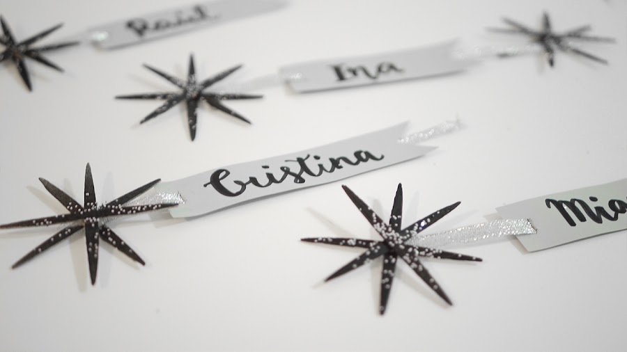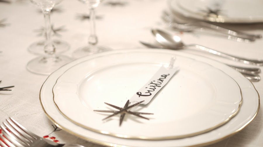 Otros años ya había preparado otros sittings de acuarelas y otros identificadores con ramitas de espigas secas. Y para la idea de este año solo hay que construir las estrellas (el paso a paso lo tienes más abajo en un vídeo), escribir los nombres de todos los comensales, colocarlo cada uno sobre su plato ¡y listo!