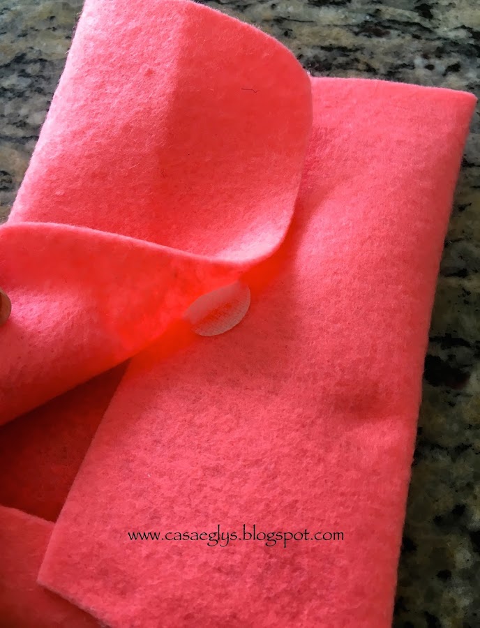 Decidimos utilizar velcro para pegar la solapa superior del sobre, pero puedes usar un bonito botón y hacer un pequeño ojal. También le pegamos un pequeño lazo de fomi abrillantado para darle un toque muy femenino, jajaja!