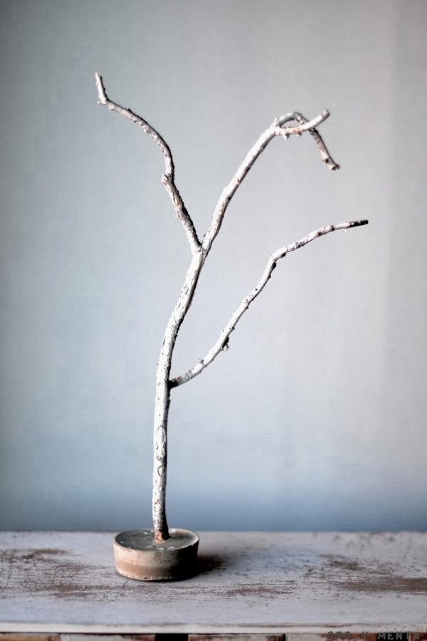 - Colocar la ramita dentro del cemento sujetándola con algo para que no se tuerza. Aquí cada uno que se las apañe como pueda!!! Como veréis yo usé una pinza y una cuchara...las prisas!!!Seguro que hay métodos más profesionales!