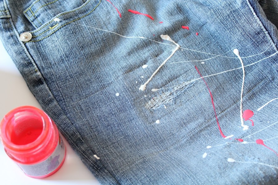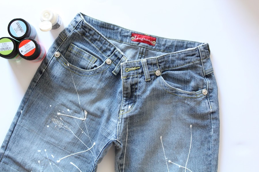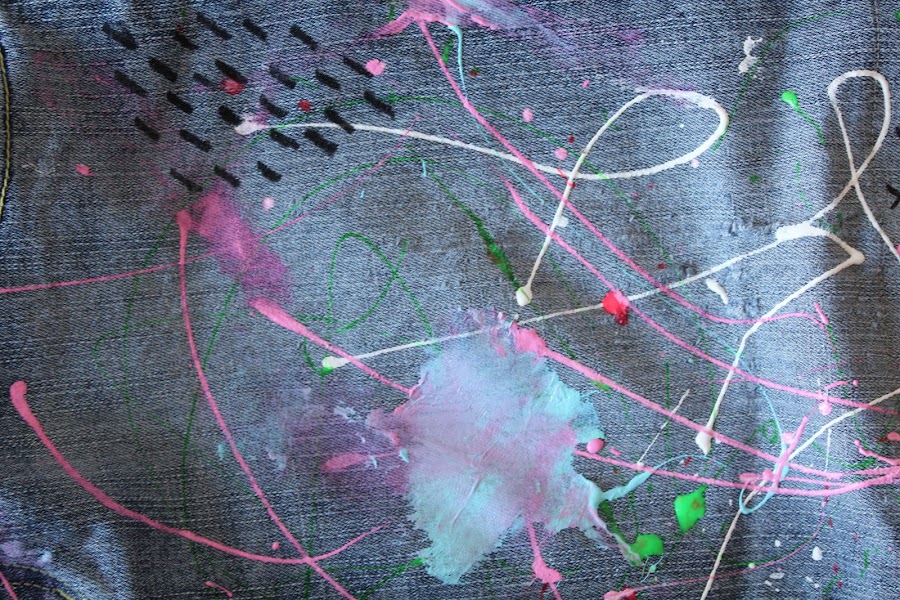 Para pintar los Denim lo único que necesitaremos es un pantalón viejo y pintura textil de los colores que queramos, yo he usado colores vistosos de Kreul y una pintura blanca textil que tenia por casa. También si queréis darle un toque más personal podéis usar rotuladores textiles.