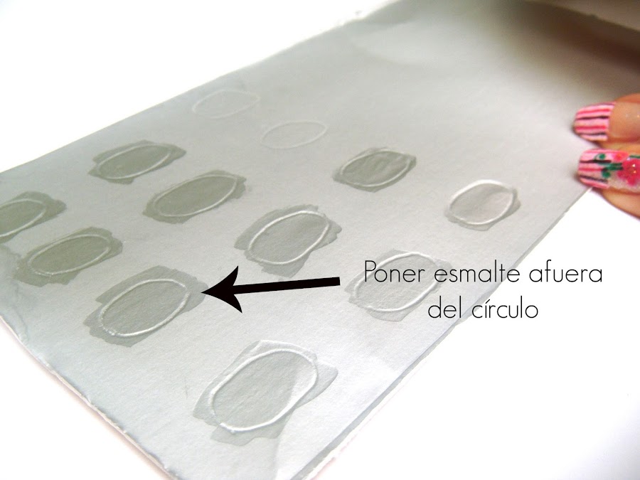 3) Cuando tengamos todos los óvalos vamos a aplicarles una capa de esmalte transparente o protector.
