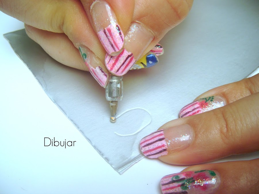 4) Y ahora la parte más divertida ¡A diseñar! (Es importante que dejes secar completamente las capas de esmalte transparente antes de hacer tus diseños)