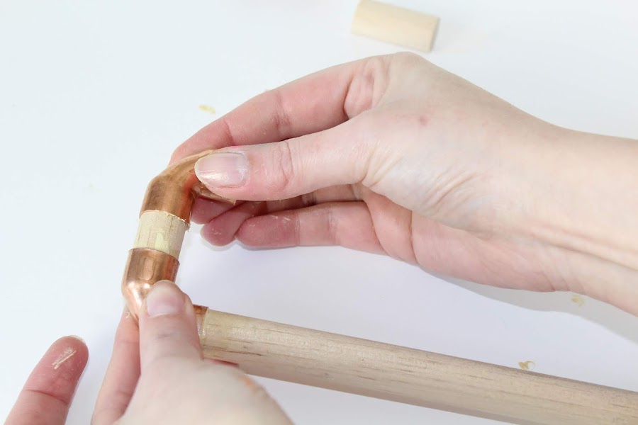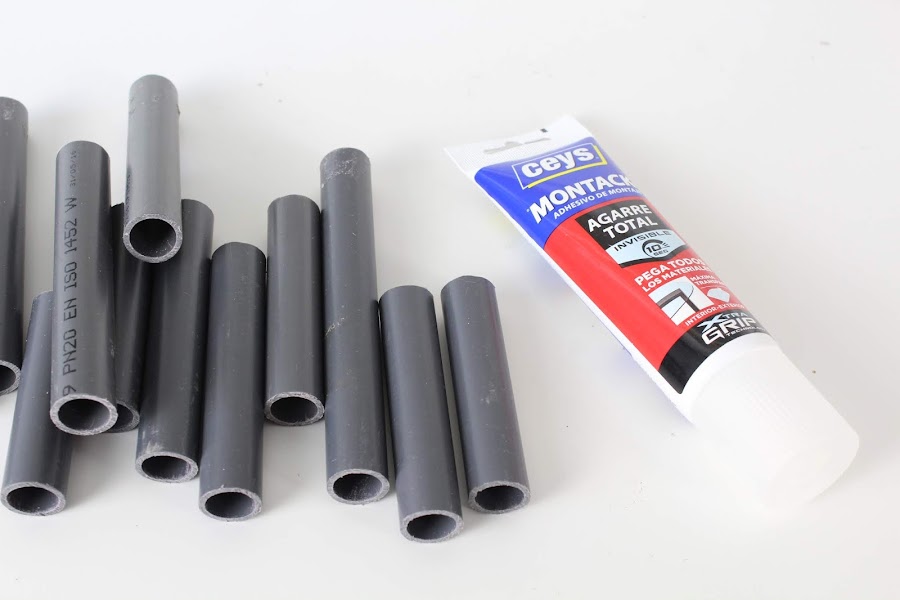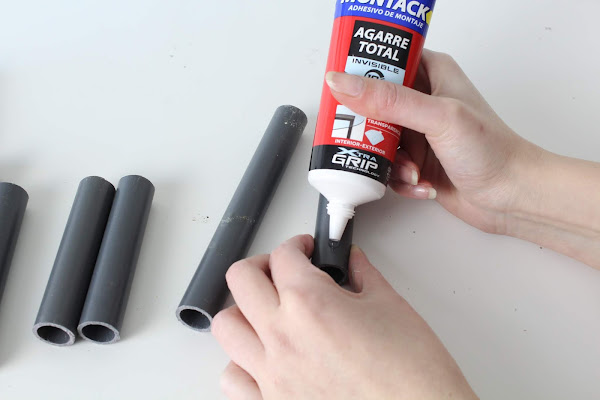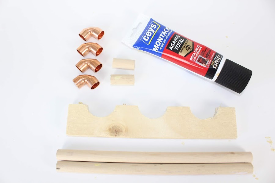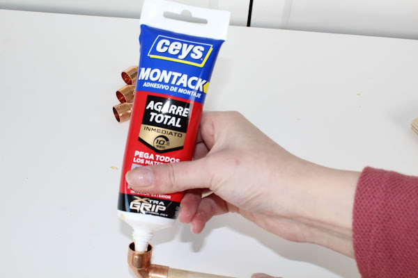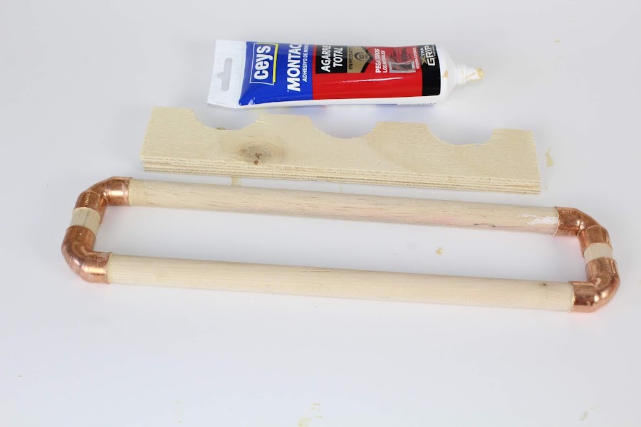 1 Paso: Crearemos la base de nuestro organizador, pegando los palos a los codos de cobre. Nos tiene que quedar un rectángulo lo suficientemente profundo para que los rotuladores queden bien rectos.