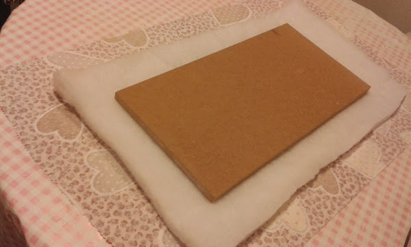 Colocamos la tela, la guata y el tablero como se ve en la foto...