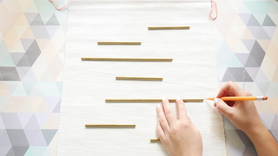3. Distribuye los tubos metálicos de forma equilibrada por el tapiz y marca la posición con un lápiz.