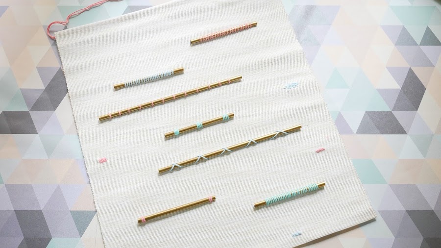 4. Ve haciendo bordados en torno a cada tubo para sujetarlo y crear distintas combinaciones.