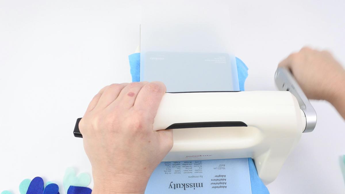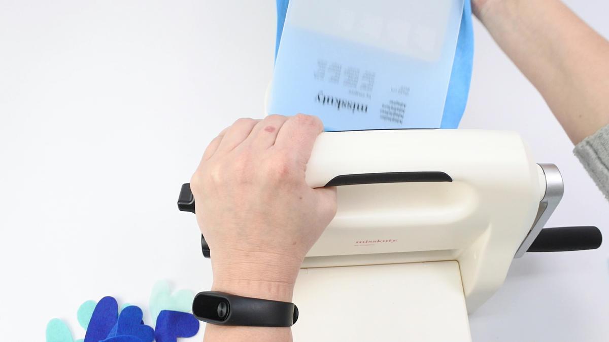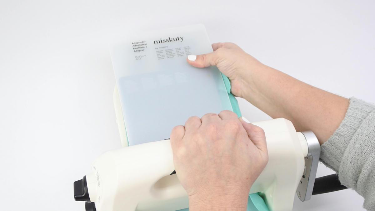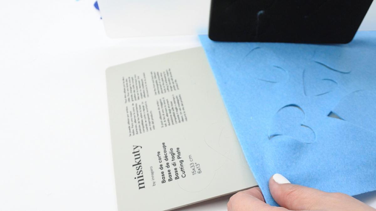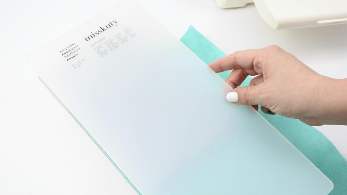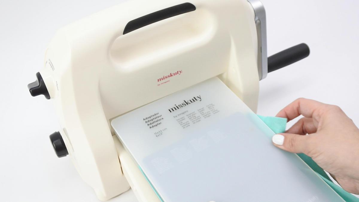 Cortar con este tipo de troqueles es muy muy sencillo. Tan solo tenemos que poner sobre la base de corte el fieltro, colocamos encima el troquel y el adaptador.