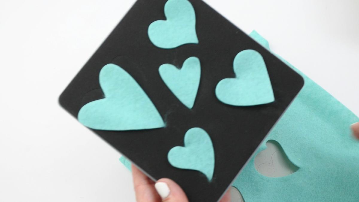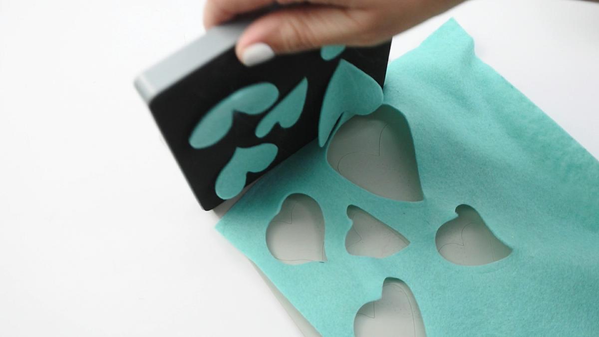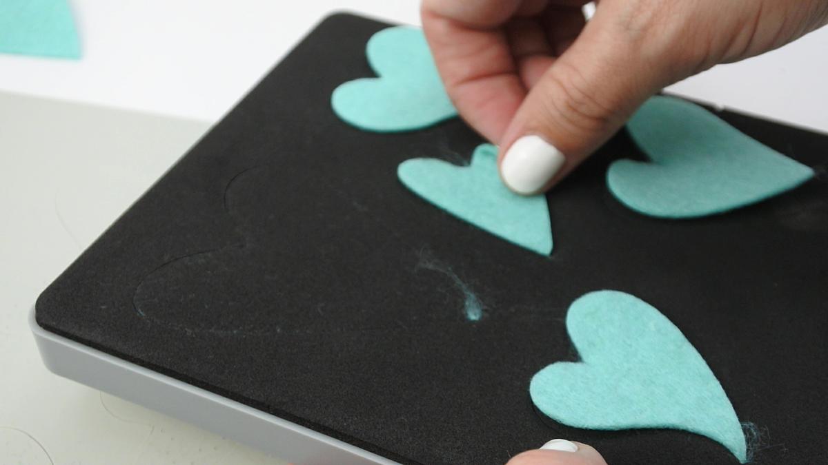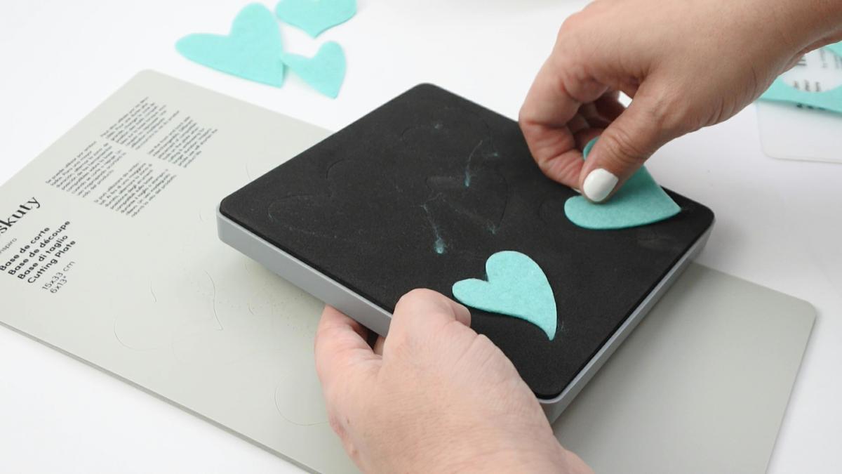 Gracias a Misskuty y sus troqueles podemos cortar los corazones de manera rápida y precisa, y con la ayuda de la pistola de silicona colocarlos de la manera deseada en un santiamén.