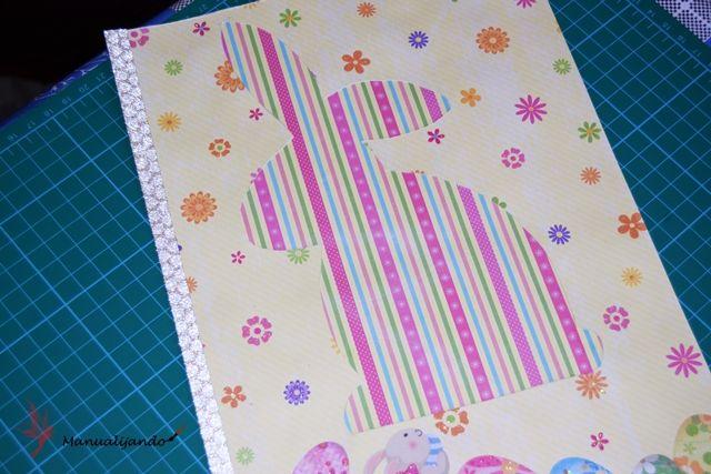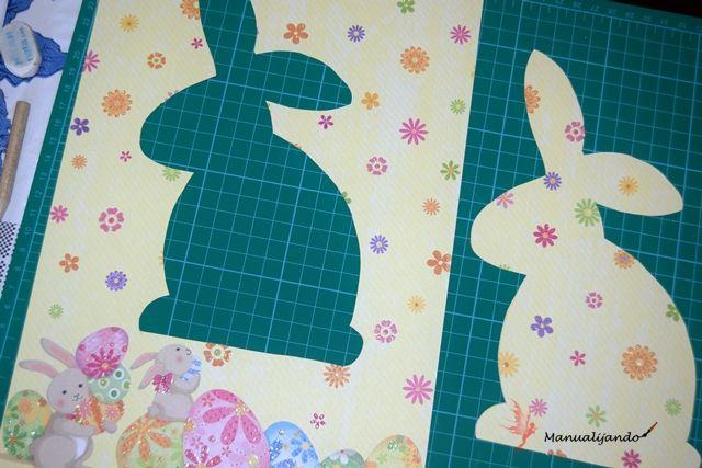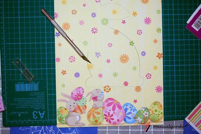 Lo primero, dibujé una figura de un conejo en un Papel de Scrap con motivos pascualeros.