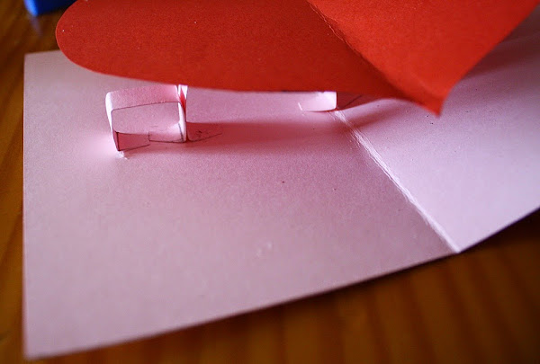 TERCER PASO: Con la cartulina sobrante rosa, vamos a hacer un soporte para el corazón. Tal y como explico en la imagen.