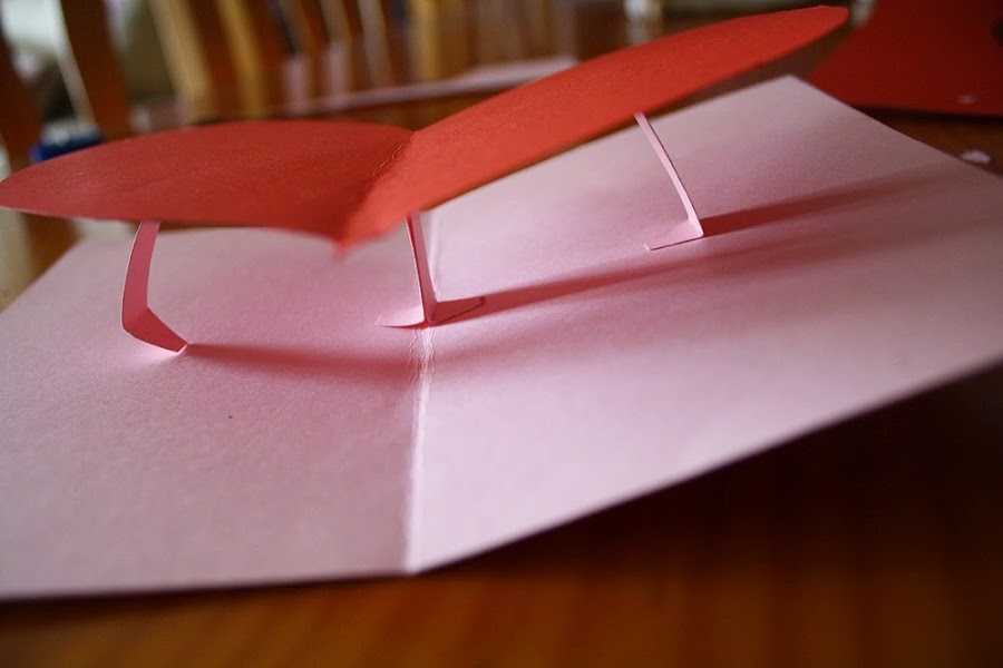 SÉPTIMO PASO: Echamos pegamento en las dos solapas centrales de 1 cm y las pegamos en la tarjeta rosa.