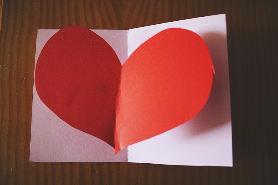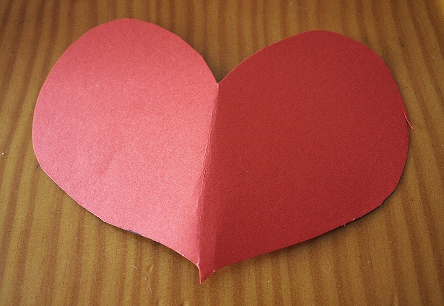 SEGUNDO PASO: Con la cartulina roja hacemos un corazón que de dimensiones tales que queda dentro de la tarjeta.
