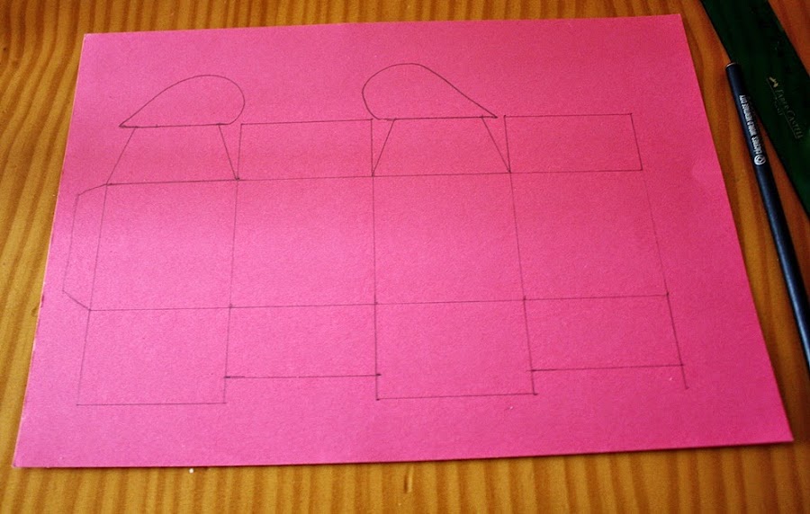 Paso a paso:PRIMER PASO: Trazamos las líneas de las zonas por las que vamos a doblar la cartulina y las pestañas donde va el pegamento. Lo hacemos con un lápiz sobre la cartulina, con ayuda de la regla para que las líneas queden rectas y de iguales proporciones. Yo hice los cuadrados de 6x6 y las solapas con un par o tres cm menos, según. Id fijandoos en el diseño y lo iréis calculando en base a eso.