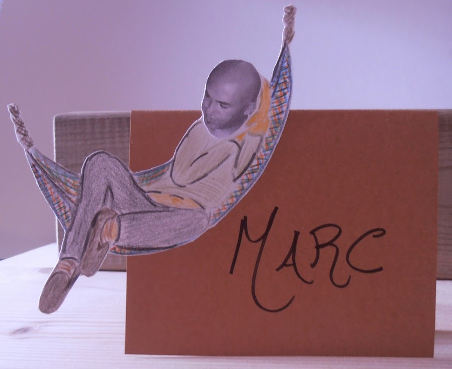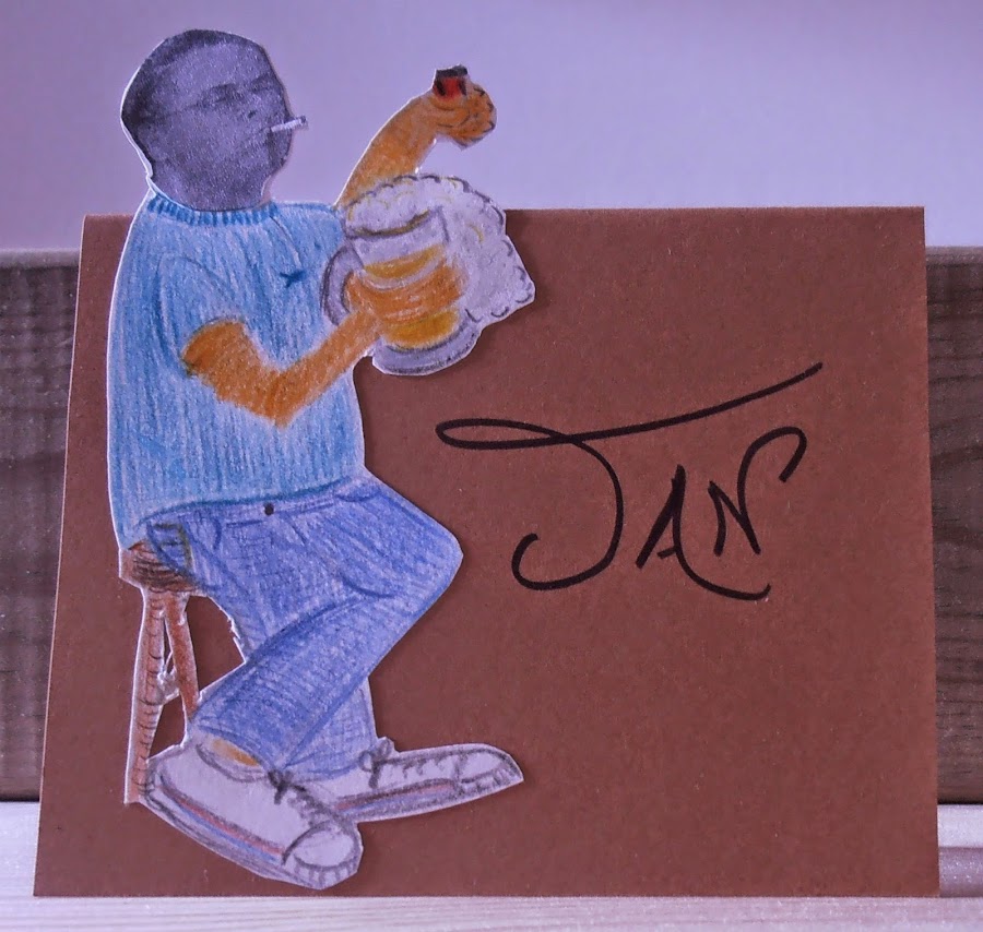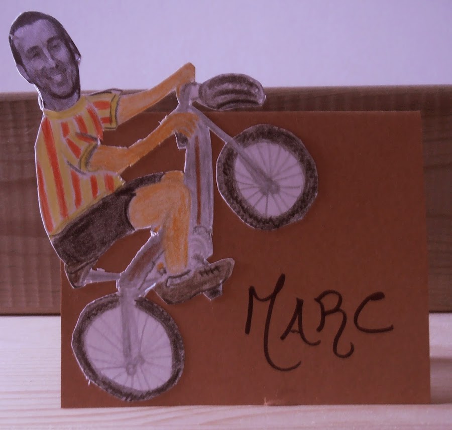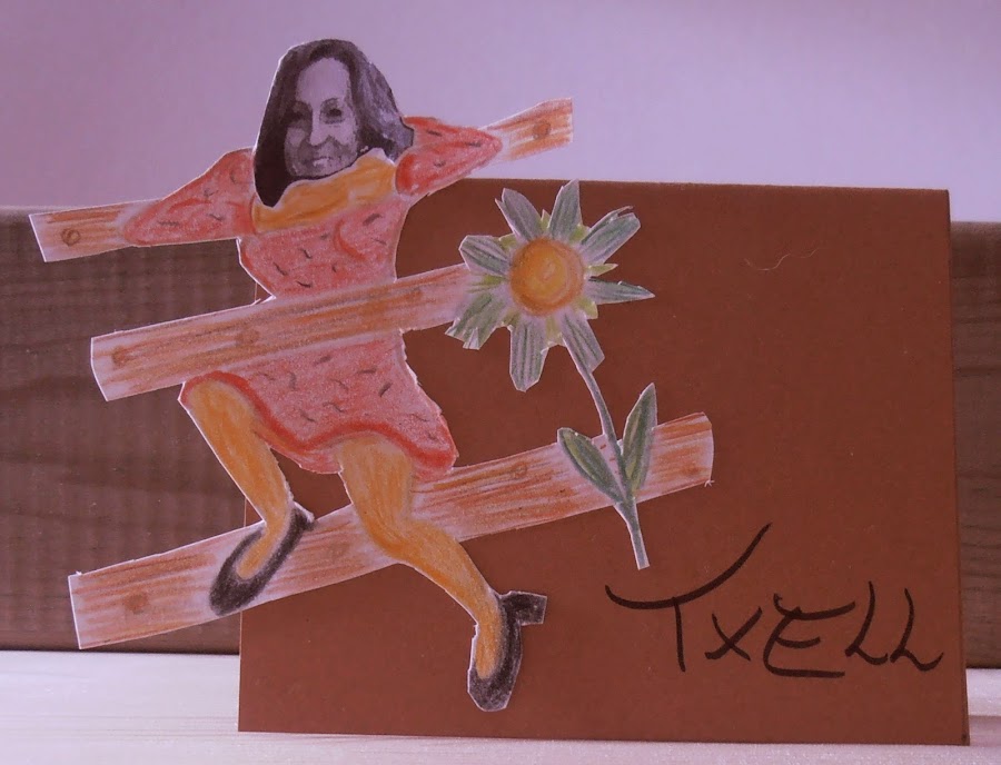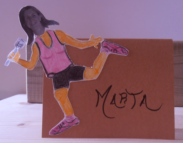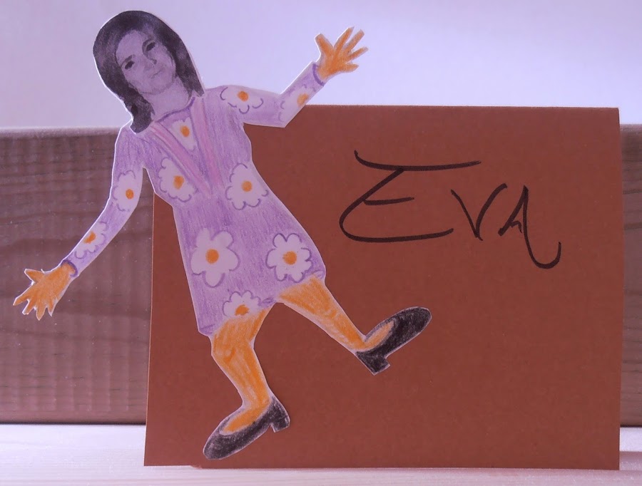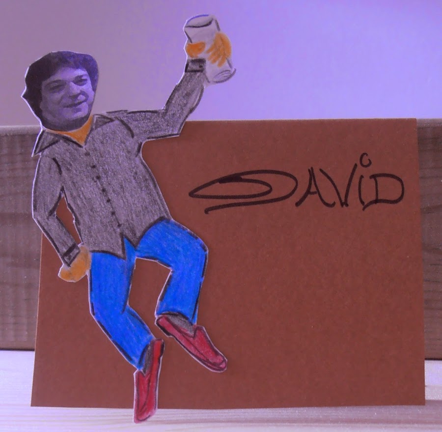 · Pinté el cuerpo con lápices de colores. Recorté toda la silueta, y lo enganché en una cartulina ya cortada en forma de tarjeta y puse el nombre de cada uno.