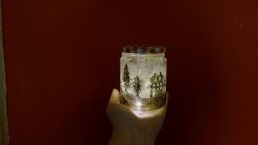 Yo primero probé con la velita para iluminar, pero no hacía toda la luz que quería, así que aproveché que tenía una mini bombilla del Muy Mucho con un led, para ponerla dentro y si os fijáis la luz que hace cambia un montón!