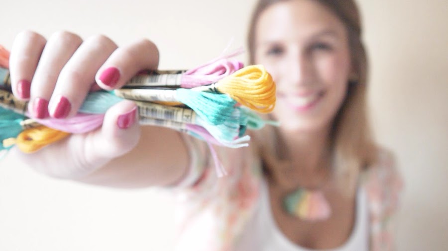 Para este diy, en lugar de lana como en el post anterior, he utilizado hilos de bordar que son muy gorditos y también quedan genial. Yo he utilizado unas cuantas madejas de DMC que me llegaron a casa hace unas semanas. Las chicas de DMC me propusieron participar en El Reto Mouliné que consistía en utilizar su hilo de bordar para algún otro uso diferente al habitual.