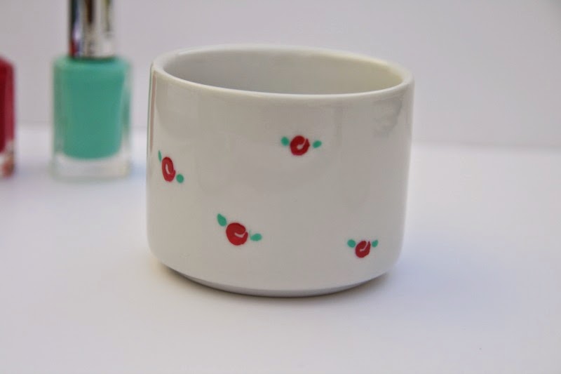 Vamos a convertir una taza relativamente sosa en una mucho más dulce con esmalte de uñas.