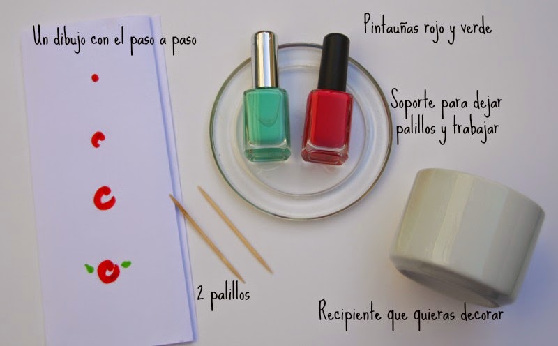 Esto es lo que vamos a necesitar. Los esmaltes de uñas pueden ser los que mas te gusten, verde y rosa, rojo, naranja...