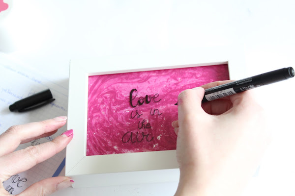 Último paso: Con un rotulador para Lettering escribiremos el mensaje de amor que quieras regalar a tu amor ya sea tu pareja, amigo o vecino.