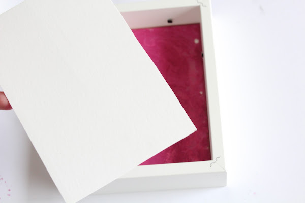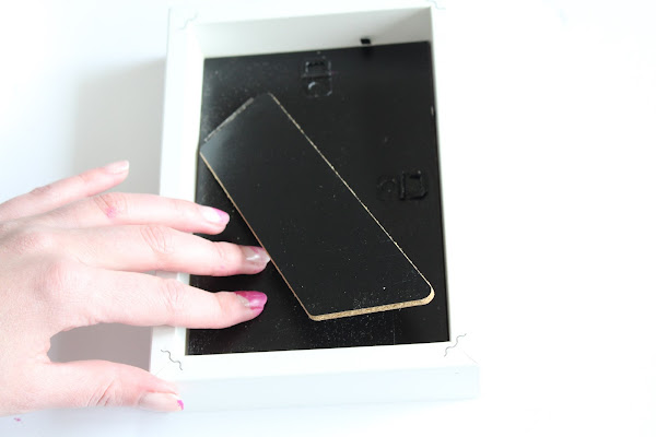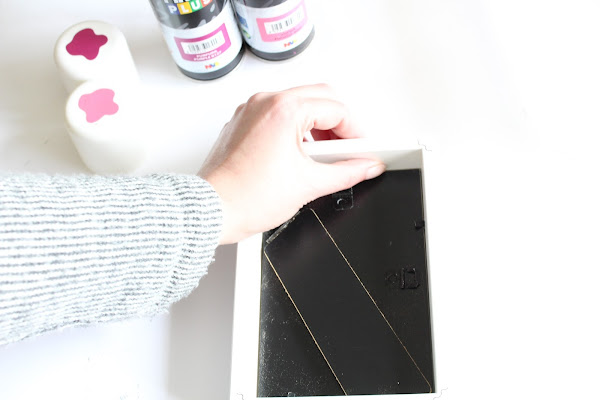 Cuarto Paso: Una vez seco el cristal lo volvemos a montar en el marco, poniendo una cartulina en el fondo para que realce el diseño. IMPORTANTE: La superficie pintada tiene que quedar por dentro.