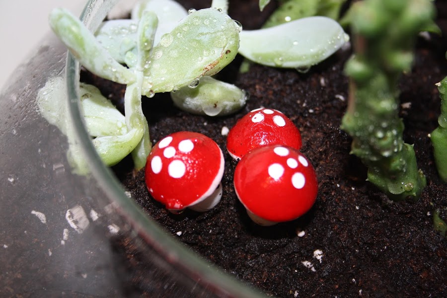 Al final del trasplante de las plantas, he decorado la maceta con piedras transparentes y con minisetas (ohhh ¿a que son adorables?!!!), pero si os apetece podéis crear un auténtico jardín en miniatura. Todo depende del gusto o de las ganas que tengáis.