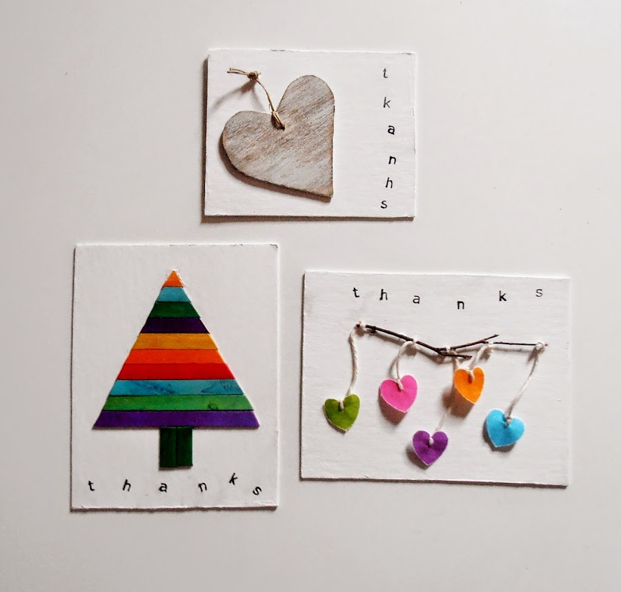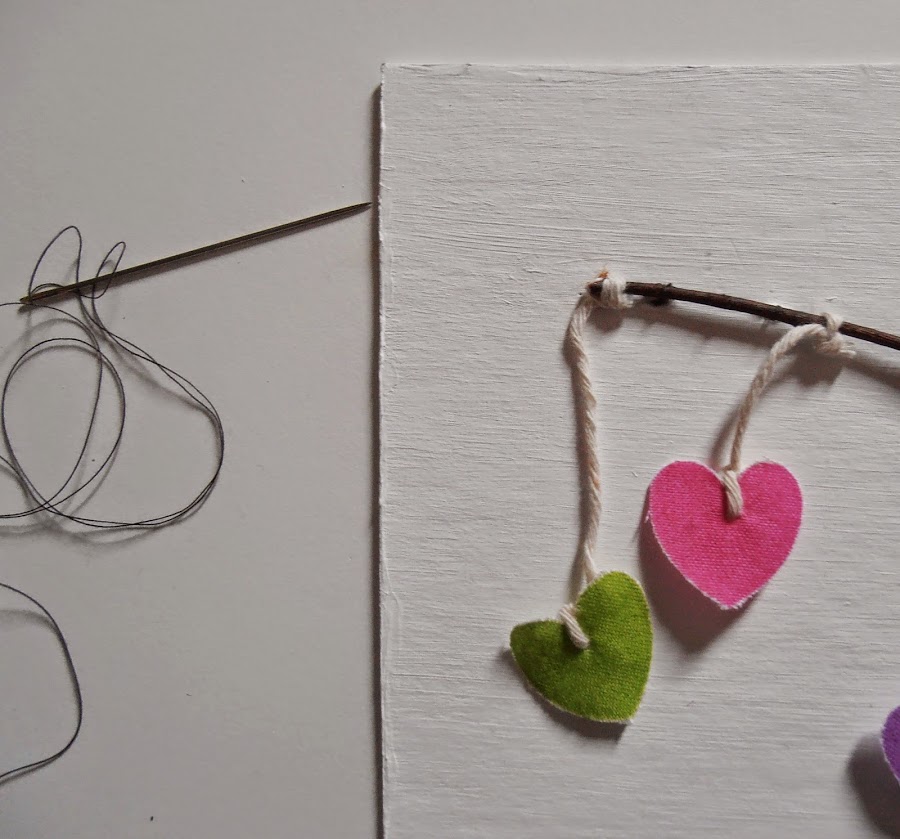 Paso el cordel por el cartón y el corazón, y lo anudo.