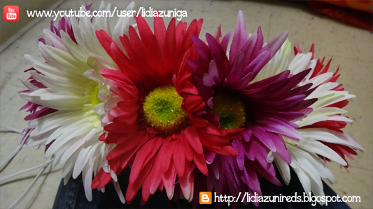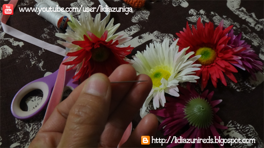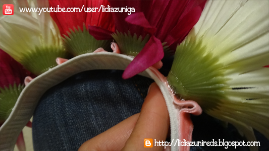 Después en cada pliegue agregue cada flor, bueno eso depende de como quieras distribuir las flores, yo solo encontré este tipo de flores pero es mejor utilizar flores pequeñas, se los recomiendo, pero bueno este evento era expres así que así las deje, para pegar las flores utilice el silicón caliente.
