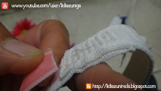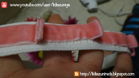 El listón que utilice es 8 centímetros mas largo que la medida de la tiara (elástico), ya que he decidido agregarle unos pliegues al listón solo por decoración, claro que es opcional.