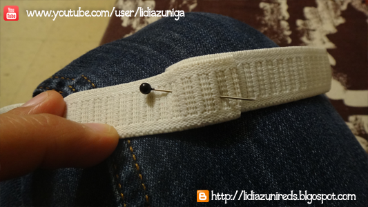 Sujeta la medida con un alfiler para que así pueda empezar a unir las orillas del elástico.