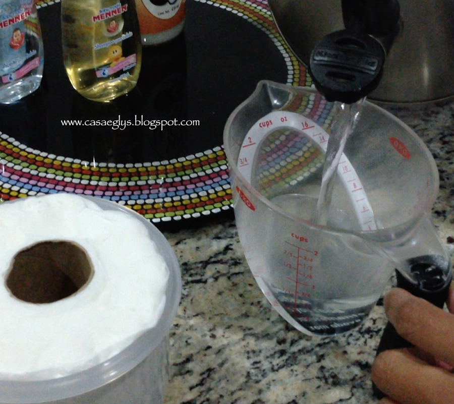 Tapa el envase por unos minutos y luego quita el rollo de carton del medio, debe salir muy fácil por la humedad. Y listo ya tienes tus toallas húmedas.