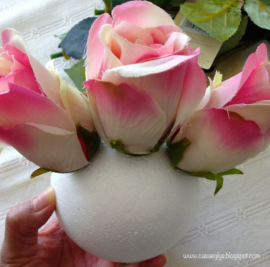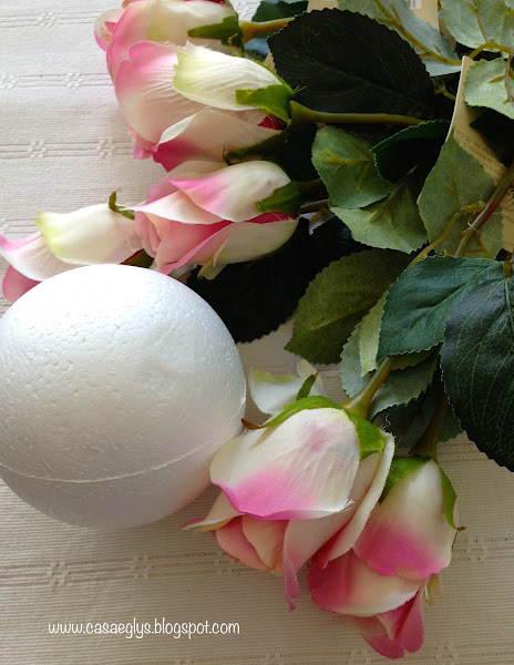 Luego empieza a pegar-cubrir toda la esfera con las flores, mi técnica es hacer primero la linea del medio y luego rellenar los lados.