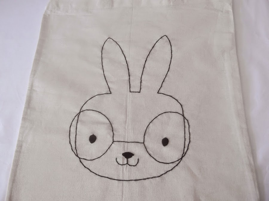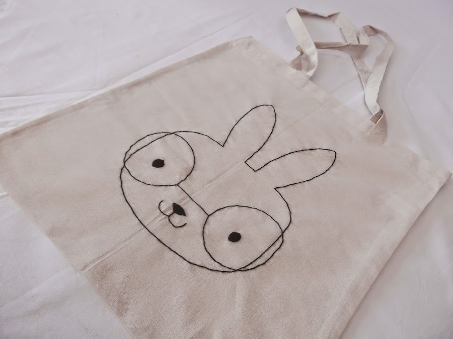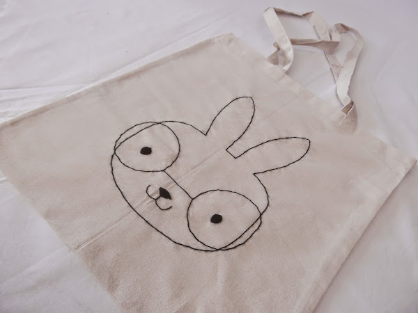 En un principio, cuando pedí 2 tote bag"s por internet, pensaba customizarlas pintando sobre ellas, ya que la idea de estampar sellos no me convencía del todo, y además, estaba enamorada de este diseño desde que lo vi, y aunque me llegaron hace poco más de una semana, no me había animado con ellas por mi miedo eterno a que quedasen mal, y es que ¡pinto fatal! Verme con un pincel en mano con pintura negra y mi pulso inexistente... mejor no pensar como hubiesen quedado las pobres.Pero eso ha cambiado, ya que la inspiración llega cuando menos te lo esperas. Ayer, al ver una foto por la red en la que había un dibujo bordado en una camiseta, dije "así es como voy a customizar mis bolsas de tela". Y así ha sido :)