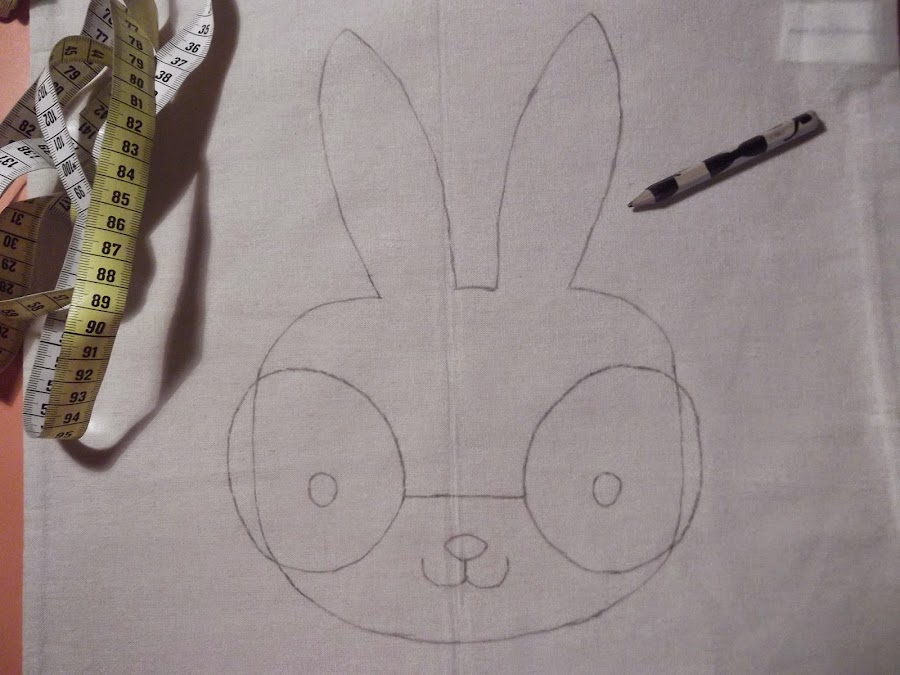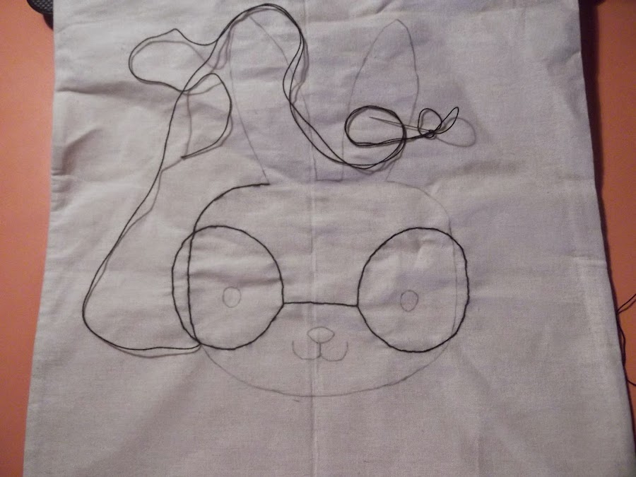 Pasamos el diseño a nuestra bolsa, dibujándolo a lápiz sin apretar demasiado. Si sois igual de mantas que yo, probad a poner el diseño dentro de la bolsa, en mi caso se transparentaba lo suficiente como para carcarlo, y menos mal porque si no, no sé que habría salido de ahí...