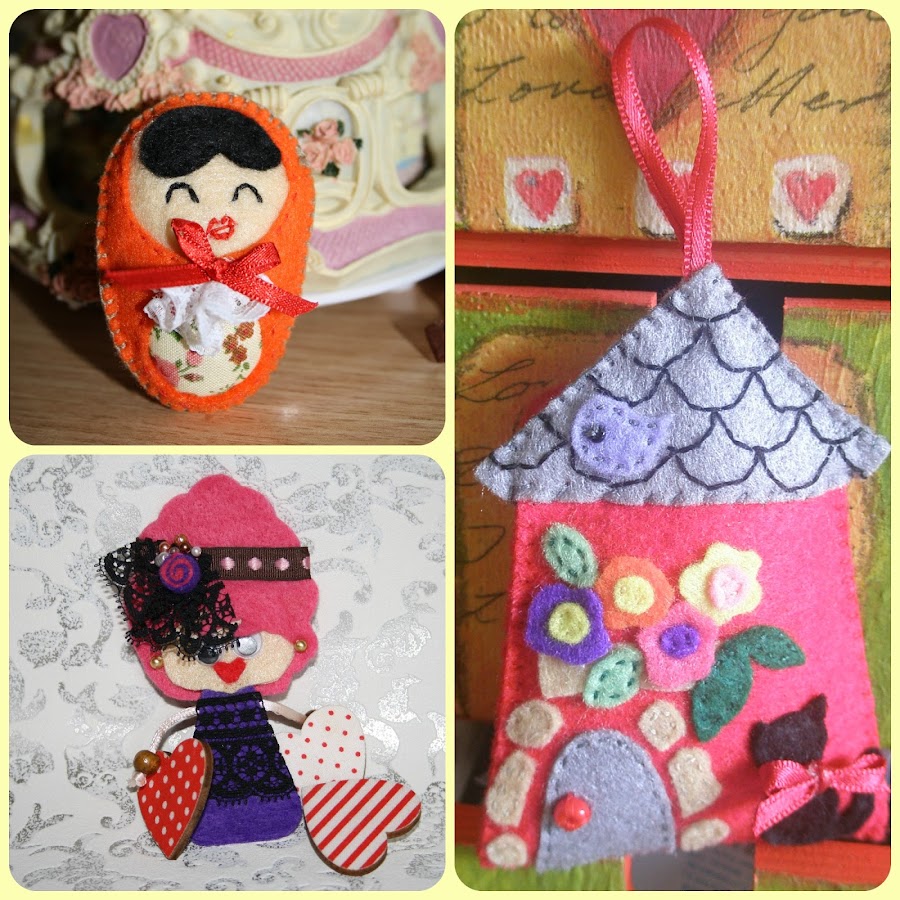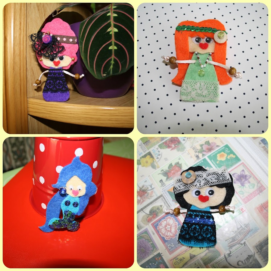 Así que "de tal palo, tal astilla". Yo he heredado esa afición y he empezado hace algunos años ya, a hacer mis pinitos con fieltro, cosiendo broches y pequeñas muñequitas.
