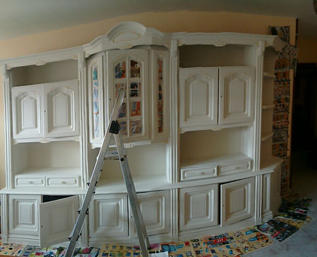 Después de ver muebles de salón, de mirar tamaños, modelos y precios y valorarlo todo, llegamos a la conclusión que podíamos transformar el mueble con pintura. Y no os mentiré: había hecho mis pinitos con algún mueble pequeño y no sabía si estaba a la altura de los acontecimientos.
