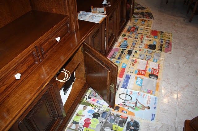 Después hay que cubrir el suelo y paredes con un plástico cubretodo o bien con papel de periódico; las paredes siguen el mismo camino, podemos poner plástico fino pegado con un poco de cinta de carrocero.