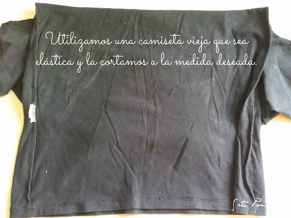 Para proteger la barriga, vamos a usar una camiseta vieja, que sea elástica. Ésta era de mi hermano y se le quedó pequeña, así que es ideal para este DIY. Cortamos la zona de las mangas, dejando la zona del cuerpo para coser al vaquero.
