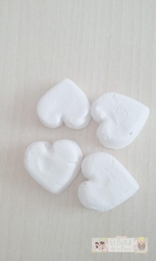 Yo he utilizado un molde de silicona para darles forma de corazón a nuestras piezas, pero puedes utilizar el que quieras o incluso dejar que ellos mismos modelen sus fichas! Y por supuesto, arcilla de secado al aire. Ideal para muchas cosas! No es la primera vez que la utilizo, y tampoco será la última... Las he utilizado para hacer cuencos y casitas, etiquetas, y alguna cosilla más...