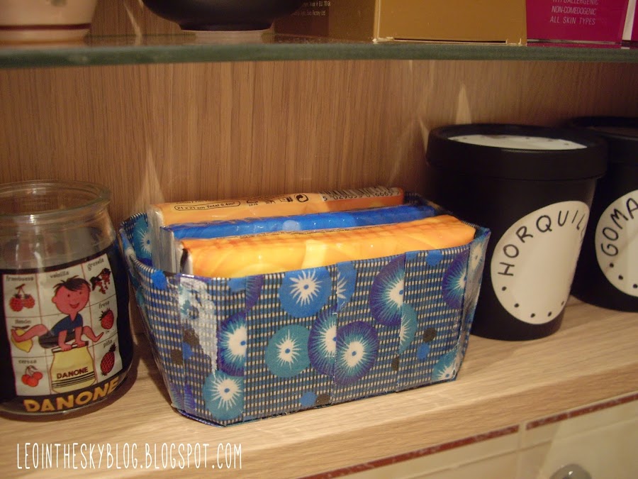 Esta la uso en el armarito del baño para tener a mano unos cuantos pañuelos de papel: