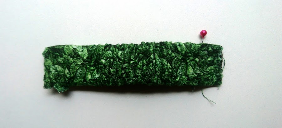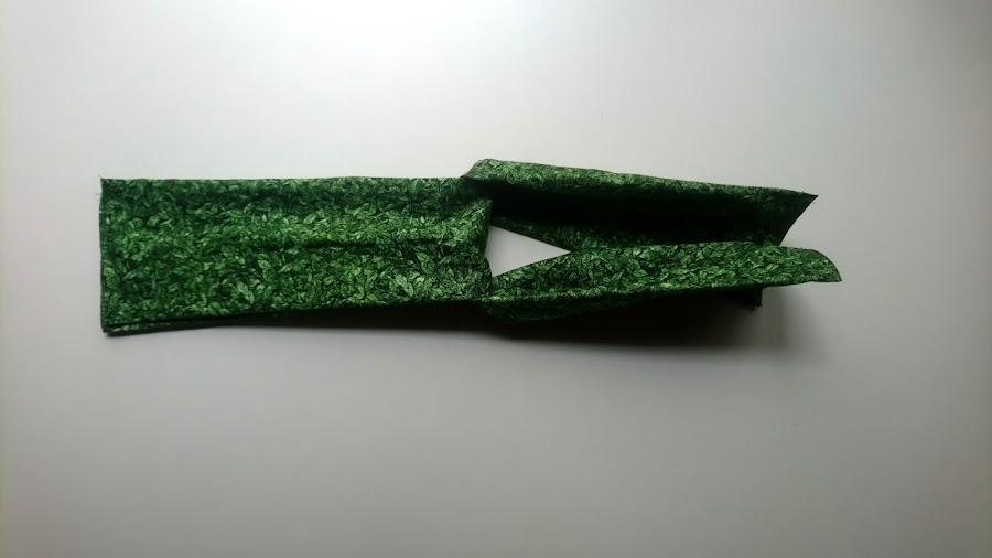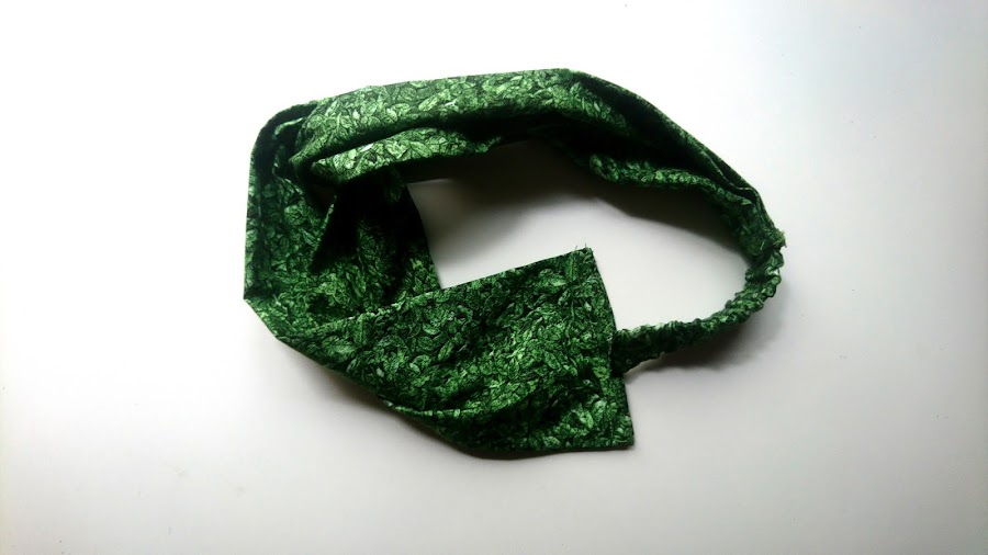 Doblamos la pieza al igual que las anteriores, la cosemos y damos la vuelta, para insertar dentro la goma y coser los extremos, y nos quedará así: