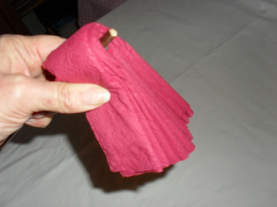 A continuación pongo el palo en medio y junto los extremo de las servilletas: