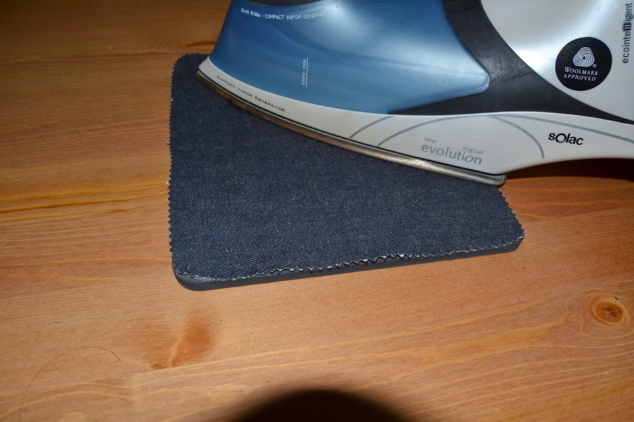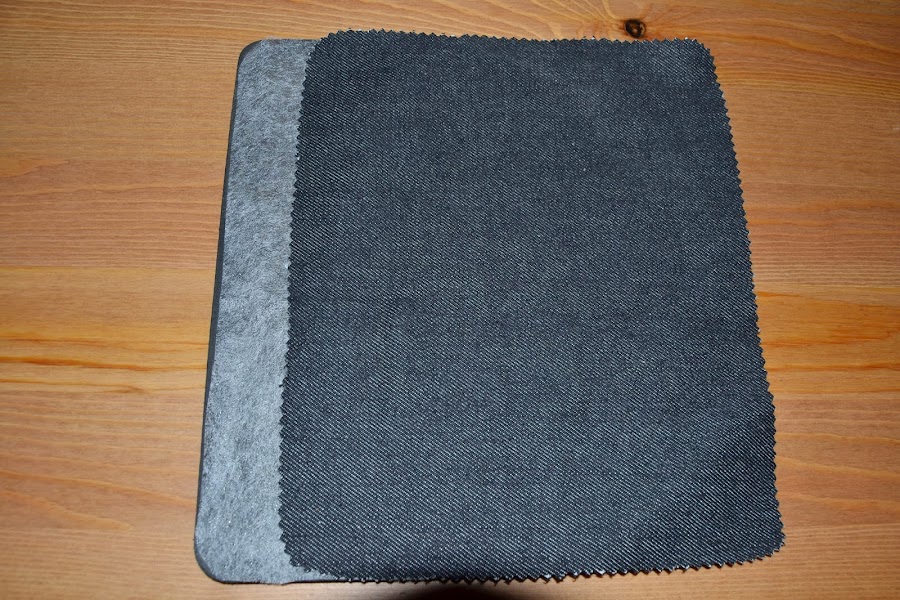 y sin ganas de gastar unos eurillos... He buscado por mi caja de retales un trozo de un tejano viejo y entretela, para renovar esta alfombrilla.