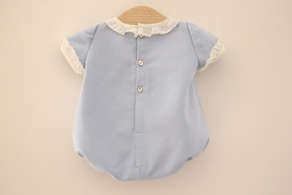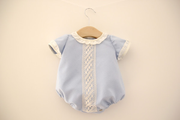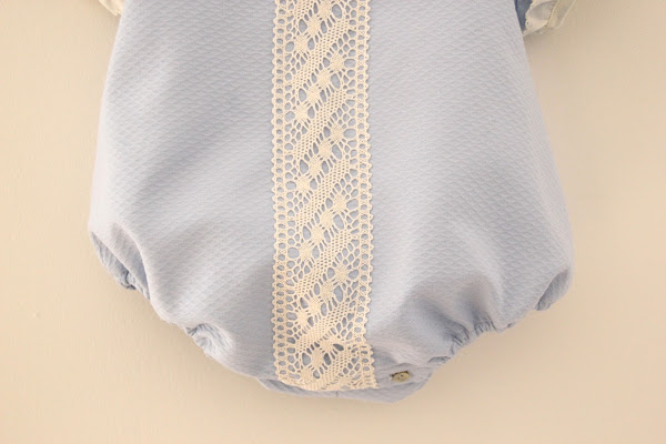 Este pelele o ranita, se lo hice pensando en alguna ocasión especial, en otoño-primavera lo conjuntaré con una rebeca color crema y unos calcetines y zapatitos en crema. Los detalles de las mangas y cuello, junto al encaje central, hacen de este pelele un conjunto perfecto si tenéis alguna boda/bautizo/comunión, y queréis llevar a vuestro bebé como un auténtico principe.