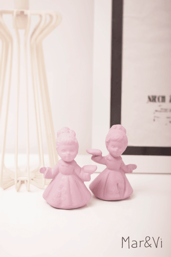 Para darle una nueva oportunidad a muchos objetos muchas veces sólo hace falta un poco de pintura. Yo en este caso usé chalk paint, pero más abajo encontraréis el enlace a otro post donde os enseño a hacer lo mismo con pintura en spray. Sabéis que casi siempre me decanto por el blanco, pero para estas figurillas pensé que este bonito rosa, parecido al orquídea radiante que está tan de moda, sería una buena opción.